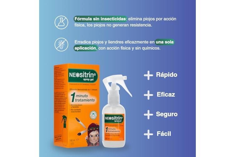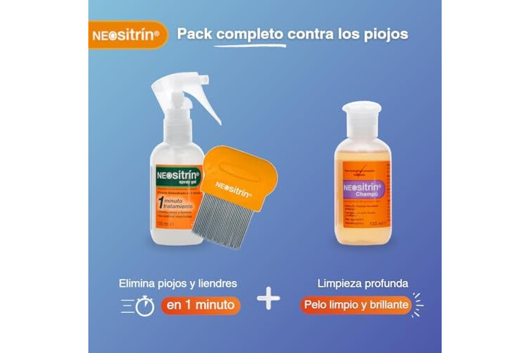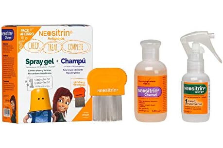 Neositrin, Pack Spray Gel (60ml) y Champú Antipiojos (100ml), Eliminación Completa y Limpieza Profunda en 1 Minuto, Sin Insecticidas, A partir de 1 año