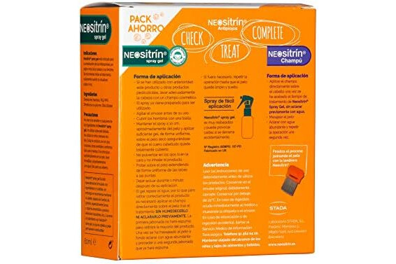 TRATAMIENTO COMPLETO CONTRA PIOJOS Y LIENDRES: Neositrin Pack Spray Gel + Champú ofrece una solución eficaz en dos pasos: elimina el 100% de los piojos y liendres y deja el cabello limpio y brillante