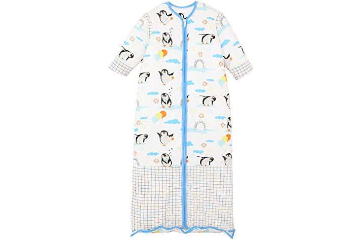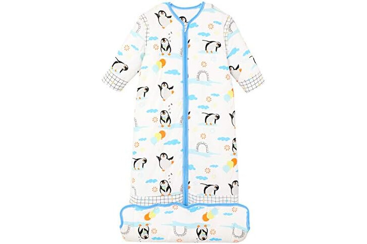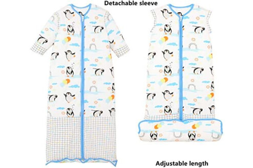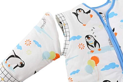 Chilsuessy Saco de dormir para niños de invierno 3,5 tog, con mangas extraíbles, orgánico, para niños y niñas de 1 a 10 años, pingüino azul, XL/altura 130-150 cm