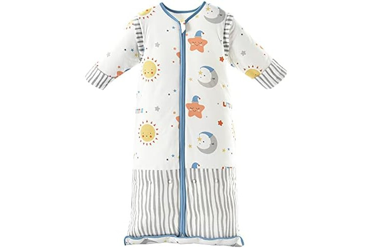 Chilsuessy Saco de Dormir para Niños de Invierno 3,5 Tog, Con Mangas Extraíbles, 1-10 Años, Azul Cielo, L (100 - 130 cm)
