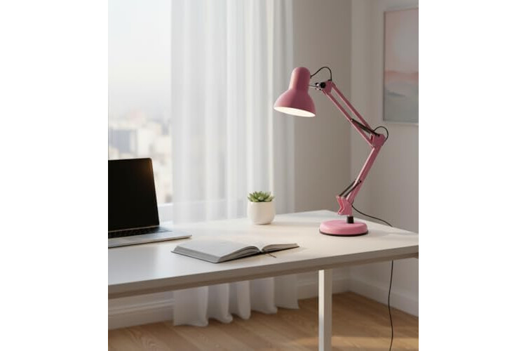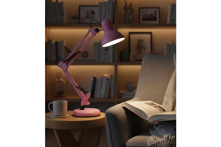 BEL AIR HOME - Lampe de bureau LED à bras articulé, lampe de table Antigona, design rétro vintage 1xE27, idéale pour illuminer votre espace de travail ou de lecture (ROSE/MATTE) (ampoule non incluse)