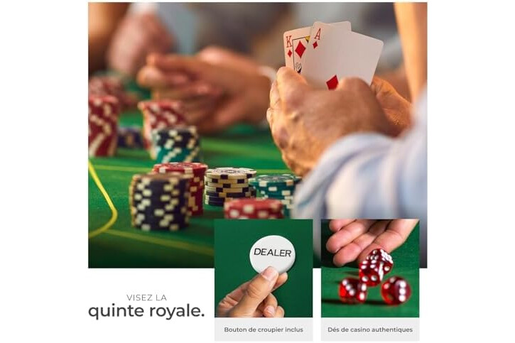 DES JETONS COLORÉS POUR UNE EXPÉRIENCE IMMERSIVE. Plongez dans l’ambiance des grands casinos grâce à 300 jetons de poker aux couleurs variées et aux valeurs claires : gris, rouge, bleu, vert, noir, violet et jaune. Parfaits pour des parties captivantes, ces jetons de qualité ajoutent une touche authentique à votre jeu de poker.