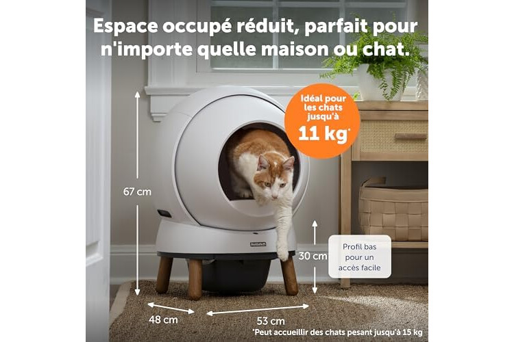 Améliorez la Litière de Votre Chat : Profitez de jusqu'à 2 semaines de nettoyage sans effort grâce à la technologie SmartSpin qui filtre les agglomérats dans un tiroir à déchets scellé (compatible avec toute litière)
