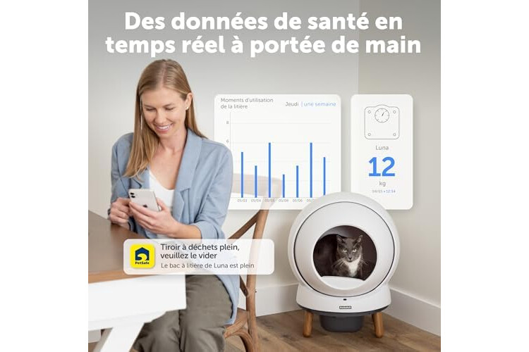 Suivez la Santé de Votre Chat : L'application PetSafe SmartSpin vous fournit des données de santé en temps réel, y compris des mises à jour de poids et l'utilisation de la litière depuis votre téléphone