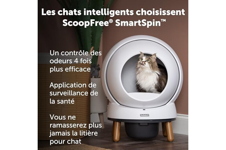 PetSafe - ScoopFree SmartSpin Litière Autonettoyante - Contrôle Avancé des Odeurs & Suivi de la Santé - Contrôle par Application - Compatible avec Toute Litière