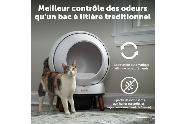 Contrôle Avancé des Odeurs : Bénéficiez d'un contrôle des odeurs jusqu'à 4x meilleur que les litières traditionnelles, grâce au tiroir à déchets scellé et au désodorisant de SmartSpin