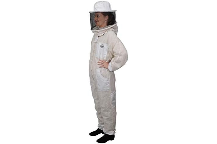 Veste d'apiculteur en polycoton avec chapeau à voile arrondi auto-soutenant, munie de fermetures éclair en laiton ultra résistantes, de poches à doubles coutures durables et son étui de transport en toile de luxe