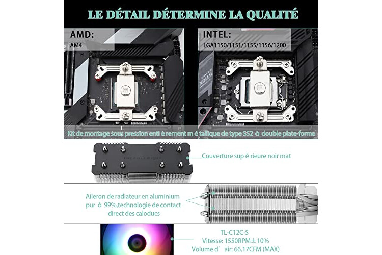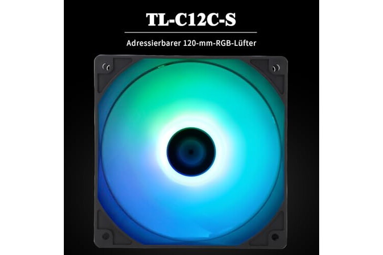 PWM fan: model: TL-C12C-S; colourful and beautiful ARGB light effects; standard size PWM fan: 120 x 120 x 25 mm (4.72 x 4.72 x 0.98 inches); fan speed (speed): 1550 rpm ± 10%; power connection: 4 pin; voltage: 12 V; airflow: 66.17 CFM(MAX); noise level ≤ 25.6dB(A), the fan combines efficient cooling with low noise level and off...