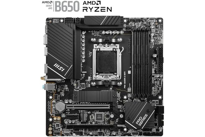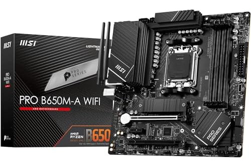 MSI PRO B650M-A WiFi Motherboard, Micro-ATX - Supports AMD Ryzen 7000 Series Processors, AM5-12 Duet Rail 80A VRM, DDR5 Memory Boost 6400+MHz/OC, 2 x PCIe 4.0 x16, 2 x M.0 2 Gen4, Wi-Fi 6E