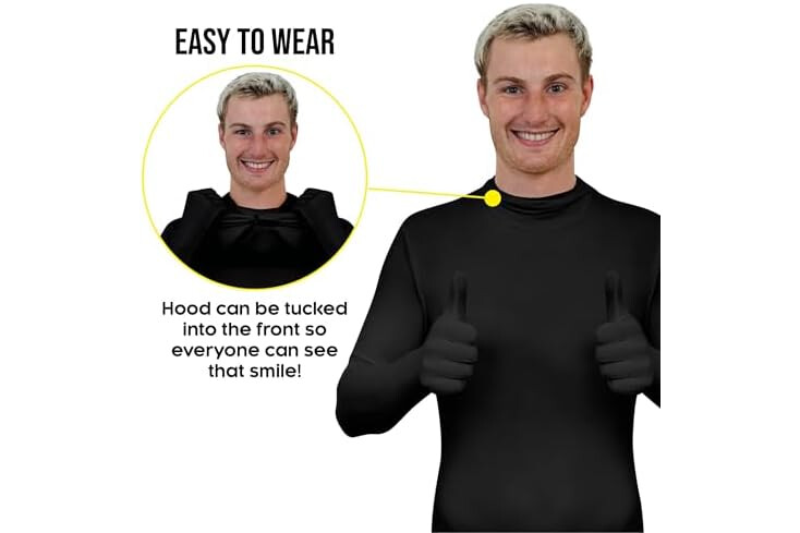 Include una tuta a corpo intero con cappuccio a doppia zip per facile rimozione. Materiale di alta qualità elastico in 4 direzioni, cerniera resistente e cuciture rinforzate nei punti di stress.