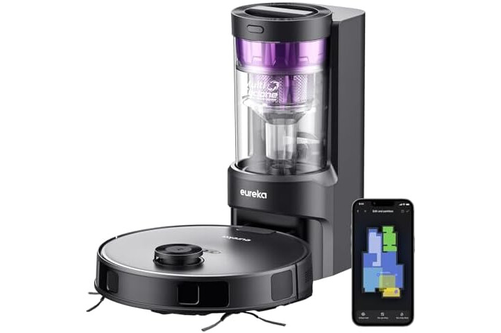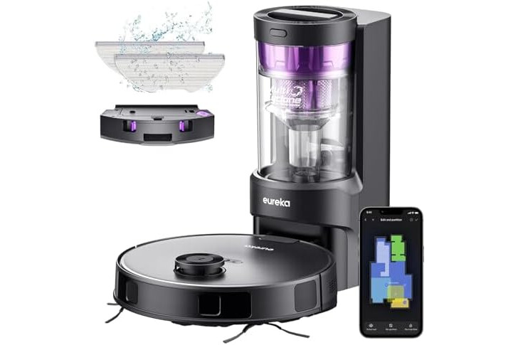 Eureka NERE10s Robot Aspirapolvere Lavapavimenti con Stazione, Pulizia Senza Sforzo per 45 Giorni, 4000Pa, Raccolta Automatica della Polvere, Autonomia 180min, Navigazione con LiDAR, WiFi/APP