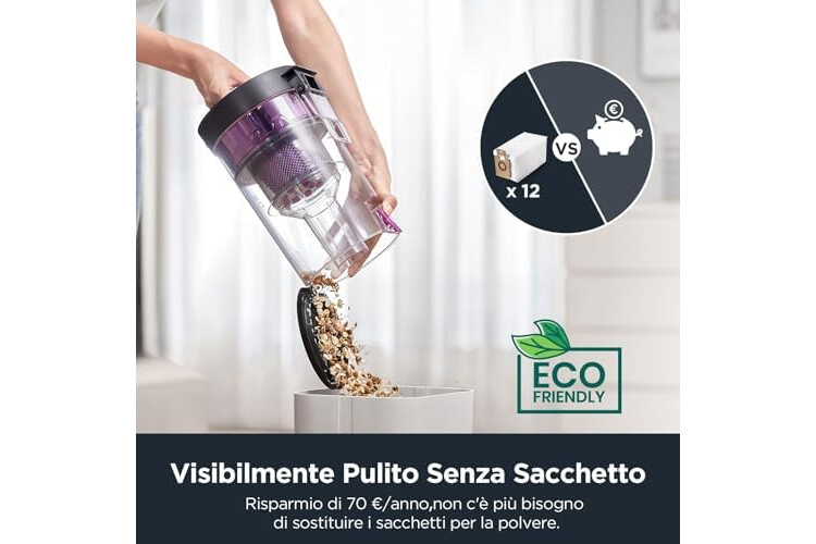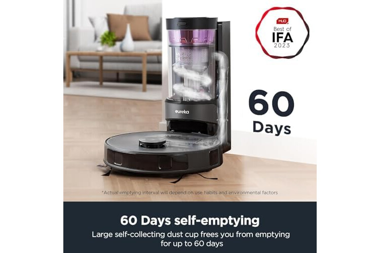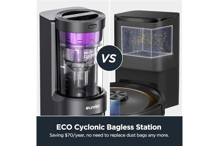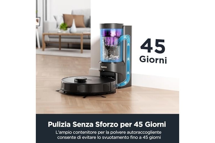 Senza-sacco Design e Pulizia Senza Sforzo per 45 Giorni: L'aspirapolvere robot Eureka NERE10s è dotato di una stazione automatica da 2L e di un cestino ecologico per la polvere al posto dei sacchetti. Grazie a questo assetto il robot può raccogliere e immagazzinare polvere e sporco fino a 45 giorni, eliminando così la necessità di svuotamento manuale e prevenendo l'inquinamento secondario. Goditi un ambiente pulito nella tua casa.