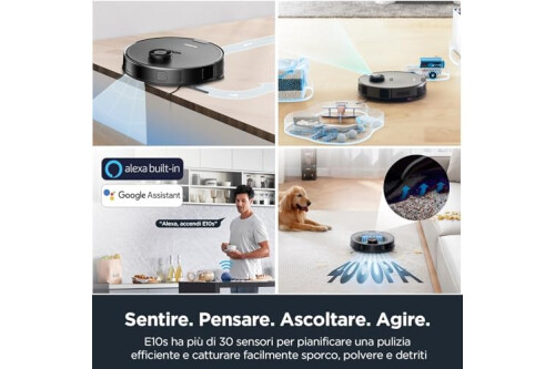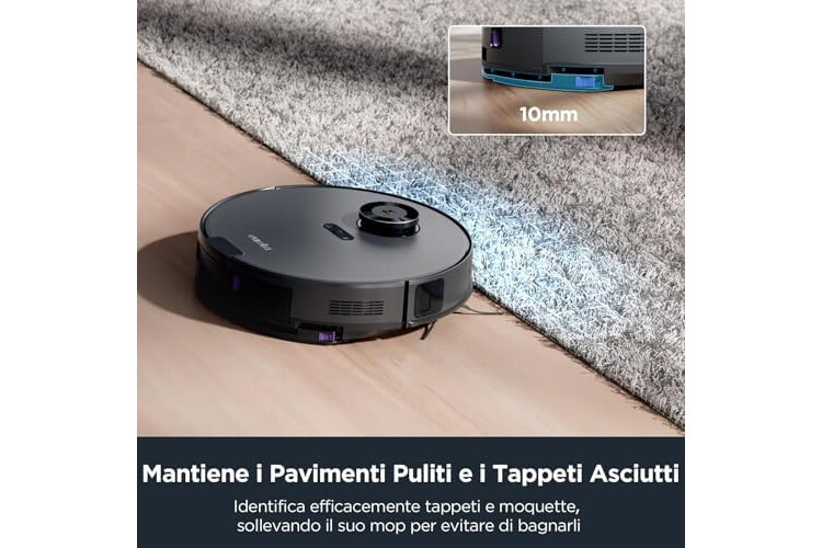 Potenza di aspirazione 4.000 Pa e autonomia di 180 minuti: Il NERE10s è un aspirapolvere robot con quattro livelli regolabili di aspirazione, capace di penetrare in profondità nei tappeti e rimuovere completamente sporco, detriti, peli di animali e altri residui su s...