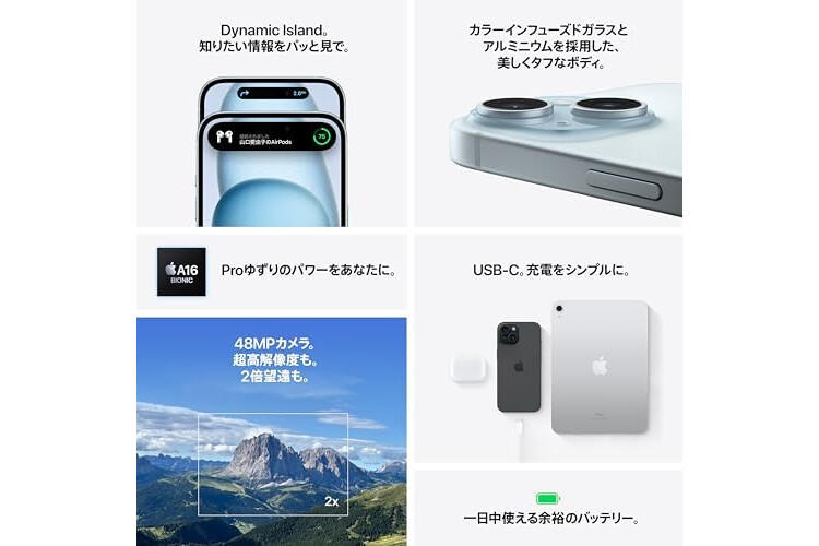 • Why not try Dynamic Island on your iPhone 15? – Alerts and live activities are displayed in motion, as if rising towards the top of the screen.With Dynamic Island, you can capture the information you want to know even when you’re busy doing something else.See the name of the person who just called, the status of your flight, and a variety of other information.