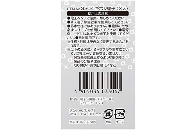 • Compatible Cord Size: AV(S) 0.5 - 2sq