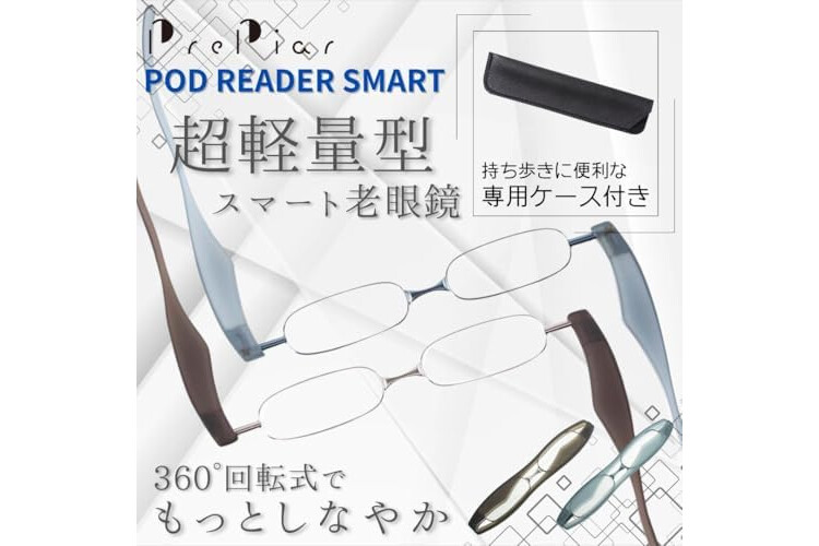 PrePiar Presbyopia Glasses 3.0 Pod Reader Gray Slim Senior Glasses with 3-Month Warranty Case Compact Men's Women's Stylish Eyeglasses