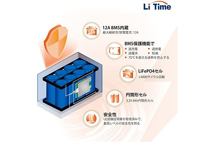 【Car Grade High Performance Cells】LiTime Lithium Iron Phosphate Battery is made with car grade LiFePO4 cells for maximum power. The cells in the battery provide the highest level of safety based on UL test certificate. Unlike lead batteries, it is easy to install without gases. This makes the lithium-ion battery ideal for solar powered, campers, overnight in the car, off-grid etc. Note: The cranking current does not tolerate, so please refrain from using it as a starting power supply