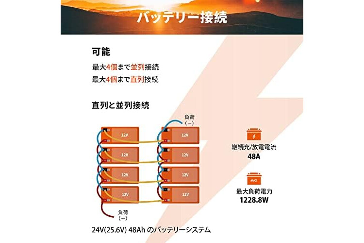【EXPANDABLE & POWERUP】The LiTime LiFePO4 battery can be expanded with up to 4 in series and up to 4 in parallel (up to 4S4P) connections. You can get higher v...