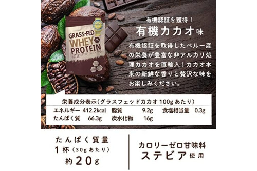 Natural Cocao Grass-Fed Protein: The coastal region of Victoria in southeast Australia is blessed by the eccentric rainfall, making it the most suitable area for dairy farming in Australia. This is a high quality powder-type protein extracted from raw milk derived from grass fed beef