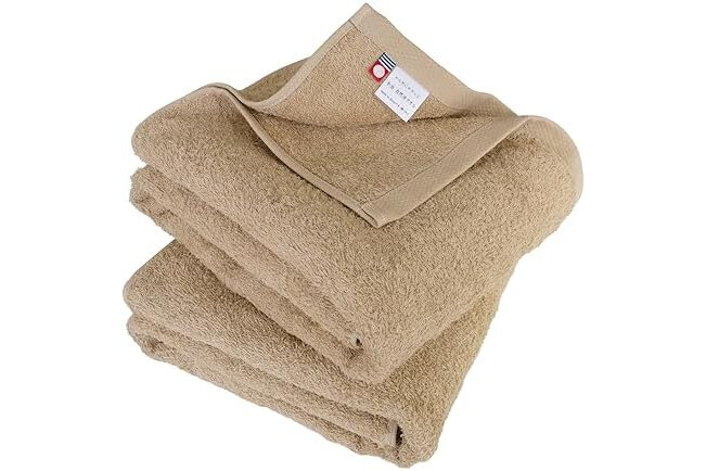 Oruta Bath Towel, Imabari Certified, Natural, Set of 2, Made in Japan, 25.6 x 47.2 inches (65 x 120 cm), Thin, Water Absorbent, Quick Drying, Room Drying, 100% Cotton (Beige)