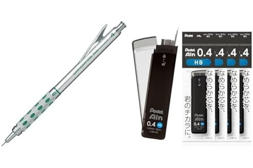 Pentel GraphGear 1000 PG1014 Mechanical Pencil, 0.02 inch (0.4 mm) & Sharp Lead, Pentel Ain, 0.02 inch (0.4 mm), HB, 5 Pieces, XC284-HB