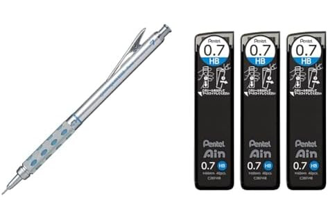 Pentel Mechanical Pencil, GraphGear 1000, 0.7, PG1017 & Mechanical Pencil Refill, Pentel Ain, 0.7 HB, AMZ-XC287HB3P, Pack of 3