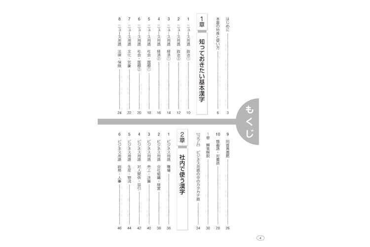 本書は、これまで述べてきたような内容を踏まえ、社会で必要になるであろう基礎的な「漢字力」を確実にアップできるような構成になっています。出題している漢字は、学習したその日から実生活で使えるように、使用頻度の高いものを厳選しています。また、シーン別にまとめて学習することで知識の体系化を助け、自分の得意分野、苦手分野をそれぞれ効果的に学習できます。