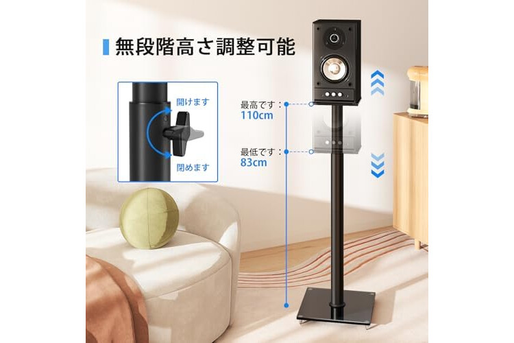 Rfiver Speaker Stand, Speaker Stand, Adjustable Height, Monitor Speaker Stand, Large Capacity, 11.0 lbs (5 kg), Tempered Glass, Stand, Set of 2, Qualified Invoices, Black, For Home and Studio
