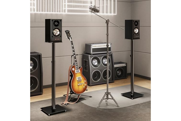 Freely Adjustable Height: The Rfiver speaker stand (11.0 lbs (5 kg) load capacity) can be easily adjusted steplessly between 32.7 - 43.3 inches (83 - 110 cm) for optimal listening experience. This speaker stand can be used for various occasions, such as at home, listening to music, playing games, meeting rooms, etc