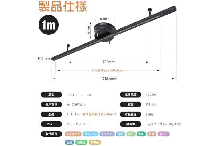 Two Colors to Choose From: Choose from 2 colors to choose from, and combine your favorite interior or lighting to create a personal space. Bright white gives a clean impression. The gentle black gives off a retro impression. Choose between white/black to match your rail color
