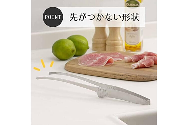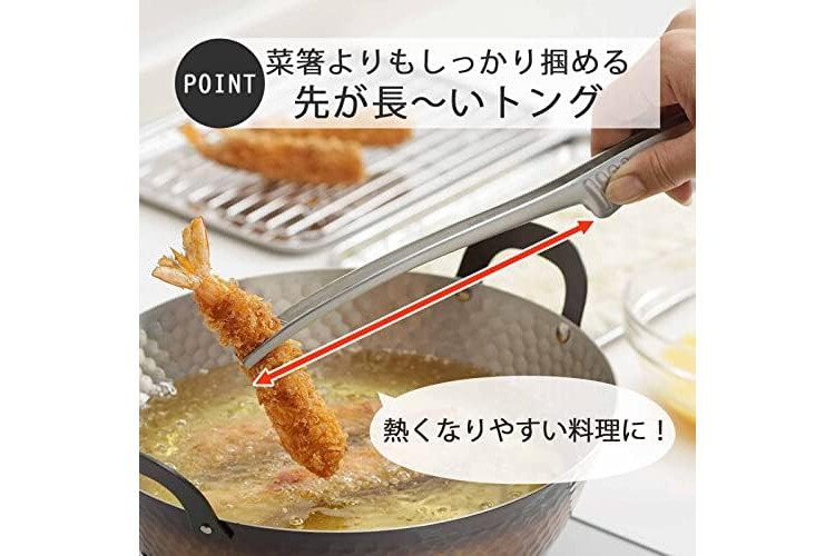 Shimomura 43142 Easier to Use Than Vegetable Chopsticks, Helping Tongs, Large, Made in Japan, Dishwasher Safe, Floating Tip, Slim, Easy to Grip, Non-Slip Treatment, Barbecue Tongs, Stainless Steel