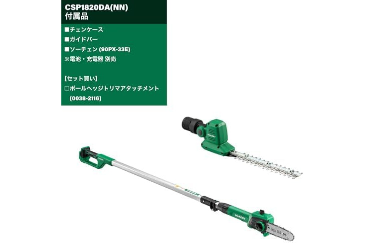 • This is a set of 18V rechargeable pole saw CSP1820DA (NN) and a pole hedge trimmer head attachment (0038-2116)