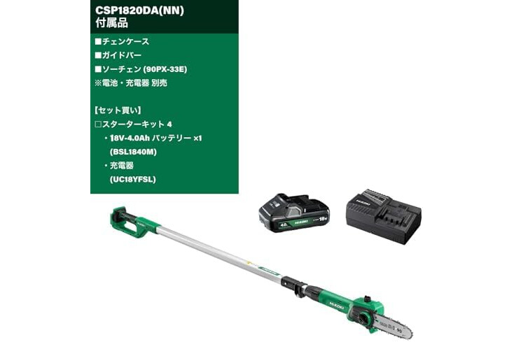 This is a set of 18V rechargeable pole saw CSP1820DA (NN) and starter kit 4
