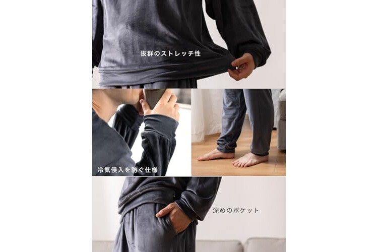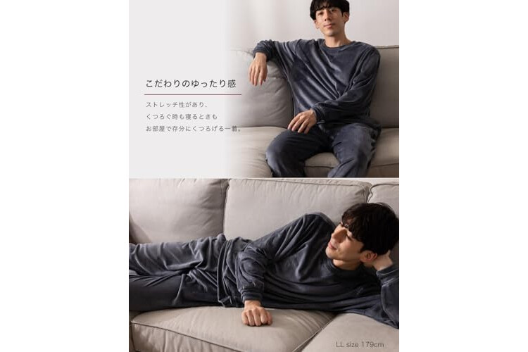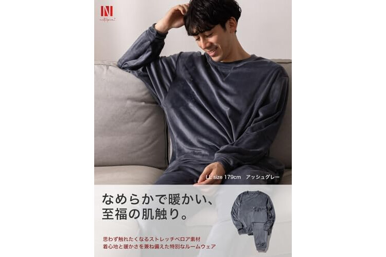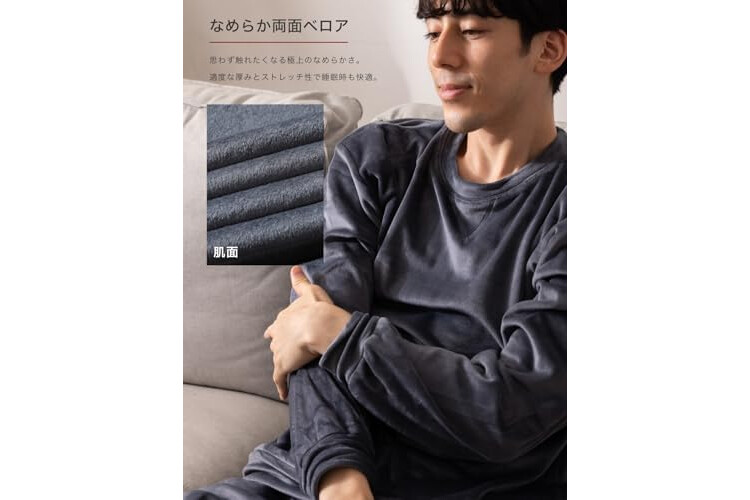 Nutopia Men's Sweatshirt, Top and Bottom Set, Blissful Texture, Double-Sided Brushed, Fall and Winter, Pill Resistant, Long Sleeve, Warm, Smooth, Stretch, Room Wear
