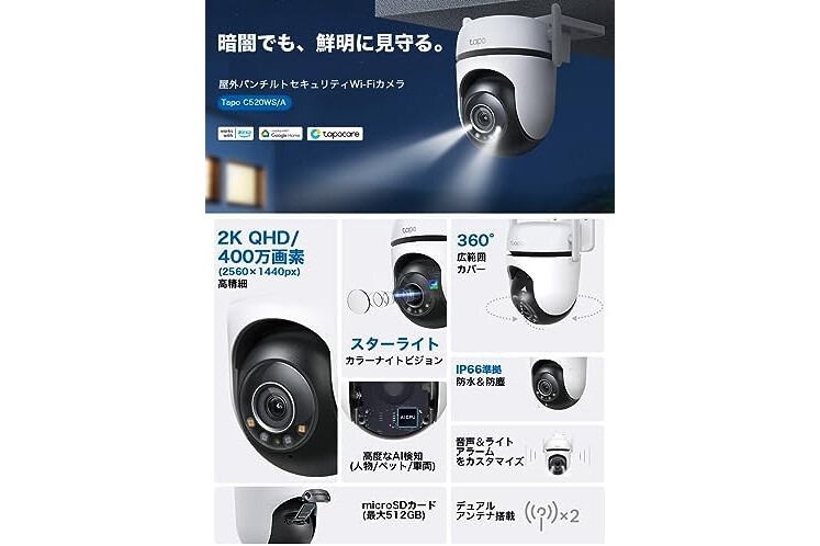 TP-Link Tapo Outdoor Camera WiFi Network Camera Wireless/Wired Connection Surveillance Camera Security Camera Indoor/Outdoor Pan/Tilt Support Smartphone App Motion/Person/Vehicle Detection 2K QHD