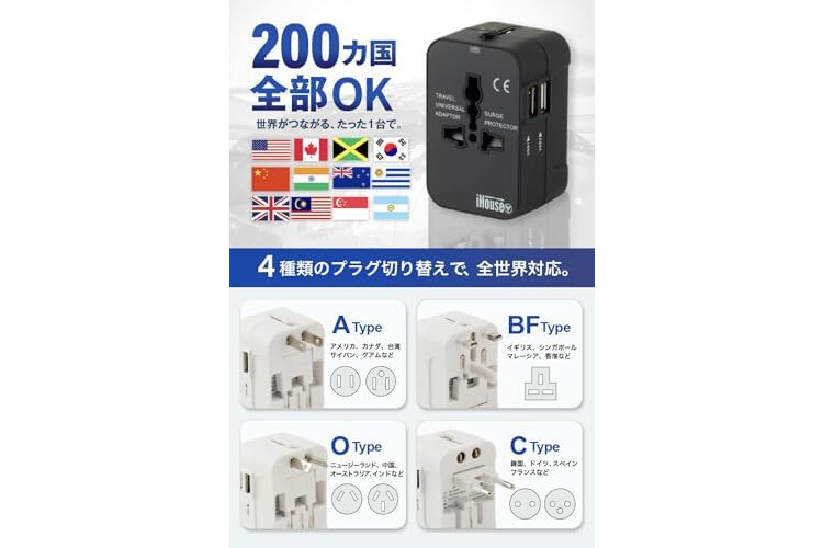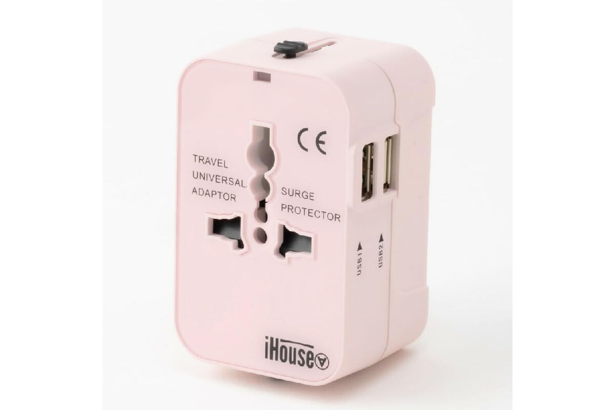 iHouse all Overseas Conversion Plug Charging Outlet for International Travel 2 USB Ports Worldwide Compatibility METI Approved A Type C Type O Type BF Type Regular Warranty 1 Year (Pink)