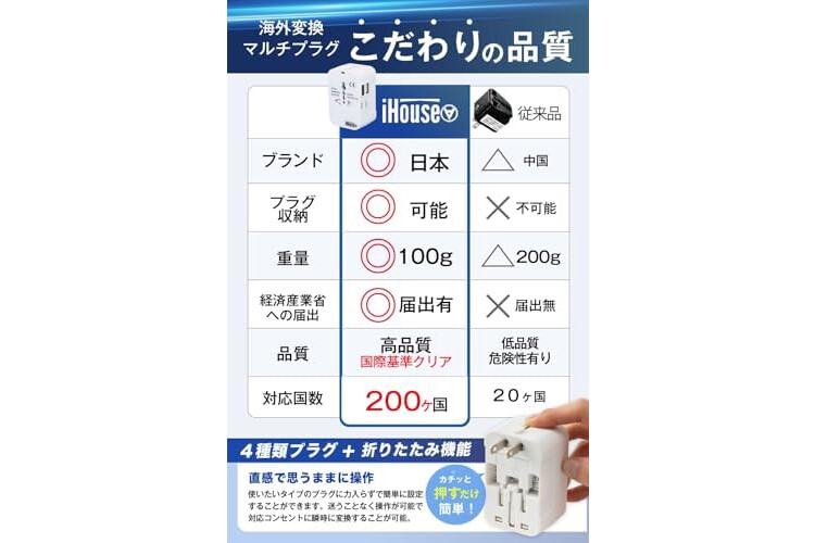 This product is a "conversion plug" for changing the shape of the outlet, and it does not have voltage conversion functionality Please note that this product cannot be used within Japan Compatible with over 200 countries' plugs including Korea, China, US, UK, Europe, etc Please confirm the plug type of your country of use, as B and B3 types are not supported This product is designed for use abroad and therefore does not have the Japanese domestic electrical standards (PSE) certification