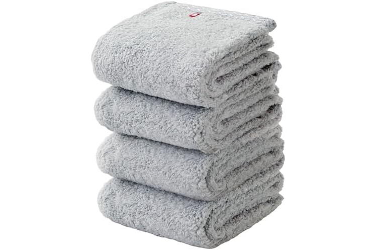 Imabari Towel, Long Face Towel, Imabari, 100% Cotton, Set of 4, Premium Luxury Long Pile Soft Twist Yarns, Gray, Ultra Thick, Hair Drying Towel, Big Face Towel, Long, Fluffy, Quick Drying, Instant