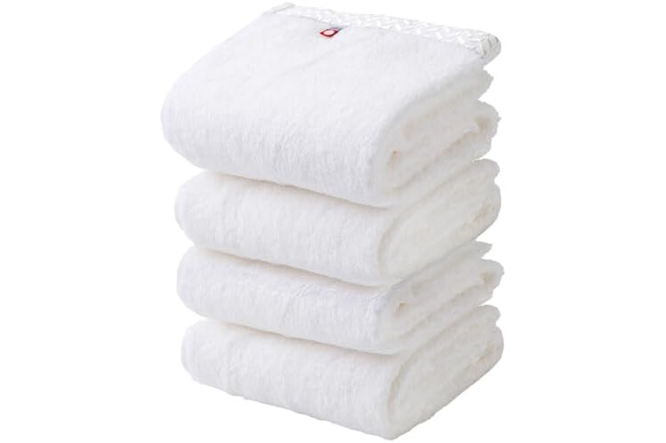 Imabari Long Face Towel, 100% Cotton, Set of 4, Long Pile, Loose Twisted Yarn, Ultra Thick, Hair Dry Towel, Big Face Towel, Long, Fluffy, Quick Drying, Instant Absorption, Made in Japan, White