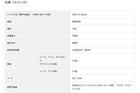 Included Components | 3.9 inches (100 mm) Resinoid Flexible Torch (#36), Spanner, Side Handle, Instruction Manual (English language not guaranteed) |