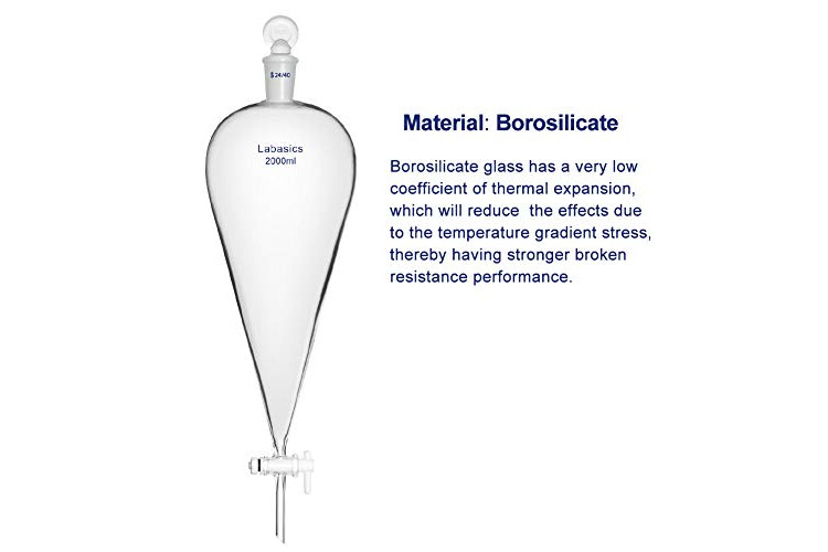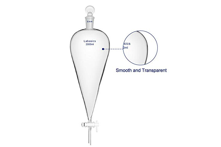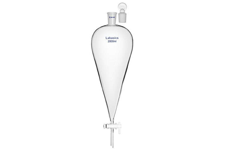 Labasics Embudo separador cónico de vidrio de borosilicato de 2000 ml con tapón de PTFE, 2000 ml