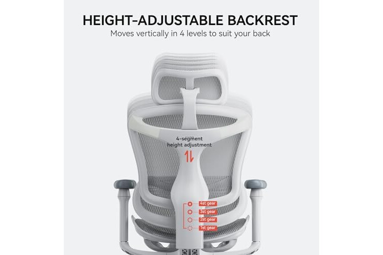 Dynamic tracking system: The backrest of the ergonomic office chair SIHOO has a fully breathable mesh design and a flexible triangular frame that adapts to your back when you move your upper body from side to side. The high backrest of the office chair has a four-position setting, with a 6 cm movement up and down, making it suitable for people of different heights. When set to the highest position, it automatically returns to the lowest level.