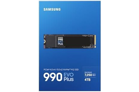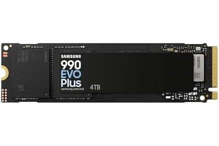 Samsung 990 EVO Plus NVMe M.2 SSD 4 TB, PCIe 4.0 x4 / PCIe 5.0 x2, NVMe 2.0 (2280), 7.250 MB/s Lesen, 6.300 MB/s Schreiben, Interne SSD für Gaming und Grafikbearbeitung, MZ-V9S4T0BW