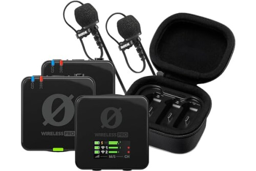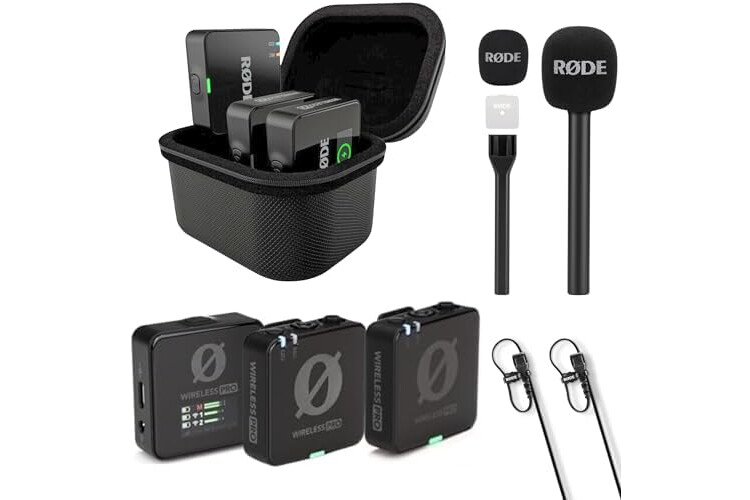 RØDE Wireless PRO Compact Wireless Microphone System with Time Code, 32-Bit Float Onboard Recording, 2 Clip or Collar Microphones & RØDE Interview GO Handheld Adapters for Wireless GO