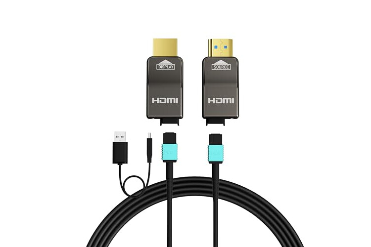 Removable connections: Removable fibre optic HDMI cables eliminate the trouble and expense of replacing a full cable if there is an error during installation, if a connector is broken or contact ends are damaged. This is especially important if the cable is installed in the wall. It's also easier to upgrade with replaceable heads, future-proof for HDMI 2.2.