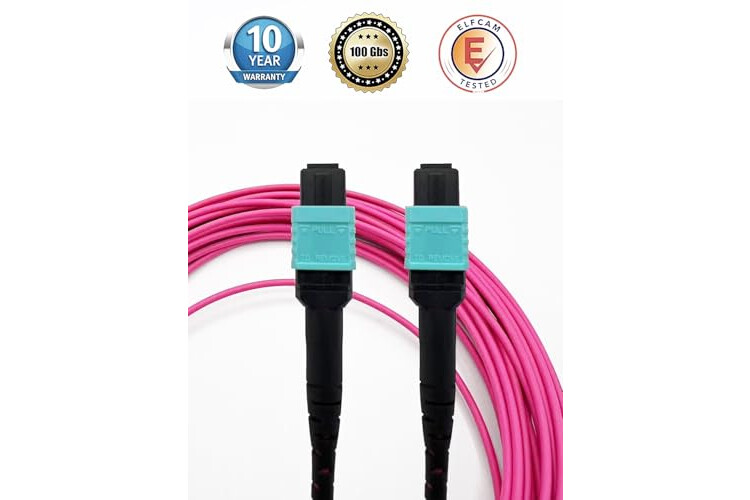 Elfcam® - MPO Female to MPO Female Fiber Optic Cable, OM4 Multi Mode, Type B, Purple, (20m, 12 Fiber)