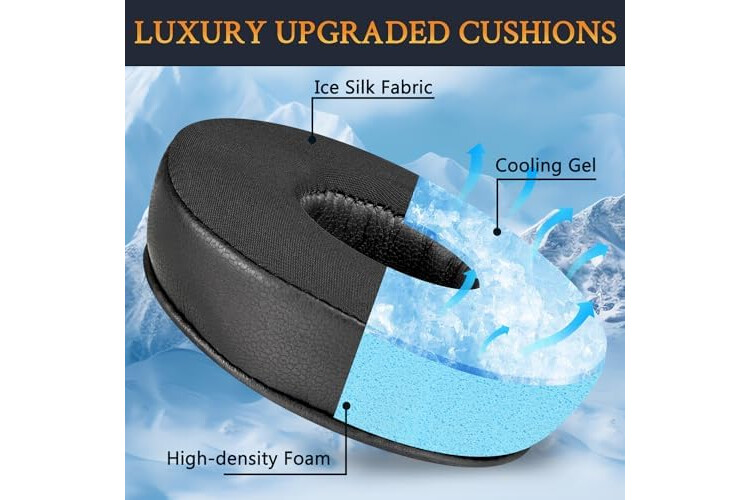 ❸Keep Your Ears Cool: The soft cooling gel is added under the top fabric layer of the ear cushions (breathable Ice Silk fabric), absorbs sweat during summer days and keeps your ears cool after long time use.