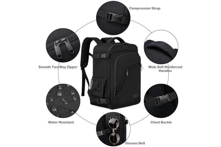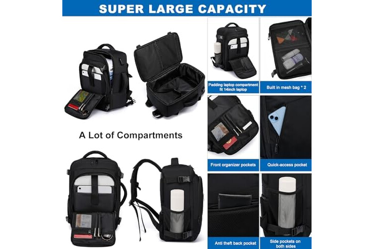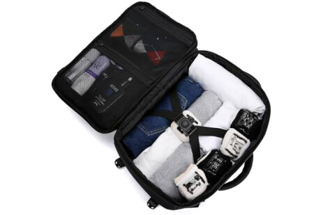 Plenty of room and lots of compartments: This flight bag looks small but it's surprisingly roomy so you can pack all your essentials efficiently. A large main zipper compartment with internal compression straps can be opened as a travel bag and is spacious enough for clothes and personal items. The separate laptop compartment protects the laptop from moving. A front zip compartment with various organizing sections allows for quick access. A mesh pocket on the side for your water bottle.