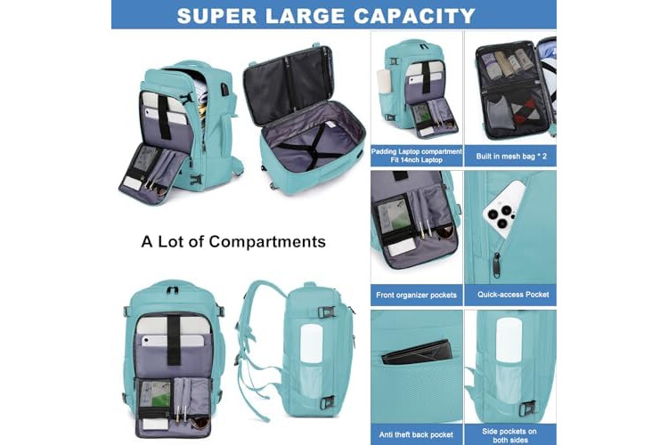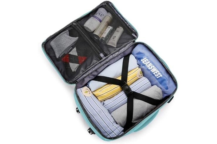 Plenty of room and lots of compartments: This flight bag looks small but it's surprisingly roomy so you can pack all your essentials efficiently. A large main zipper compartment with internal compression straps can be opened as a travel bag and is spacious enough for clothes and personal items. The separate laptop compartment protects the laptop from moving. A front zip compartment with various organizing sections allows for quick access. A mesh pocket on the side for your water bottle.