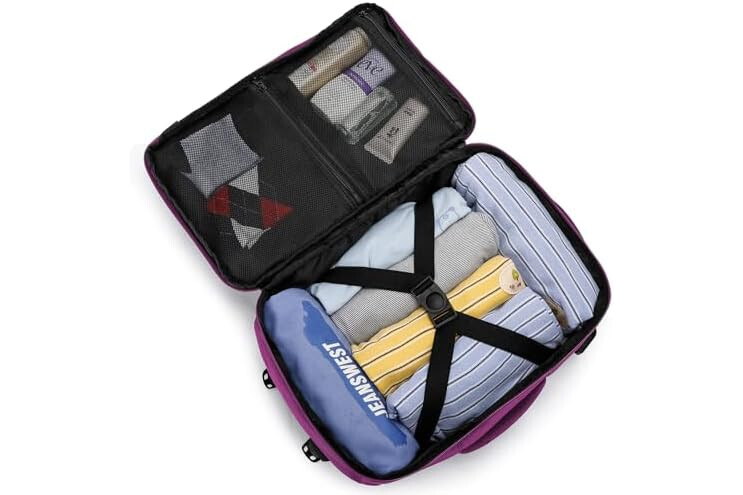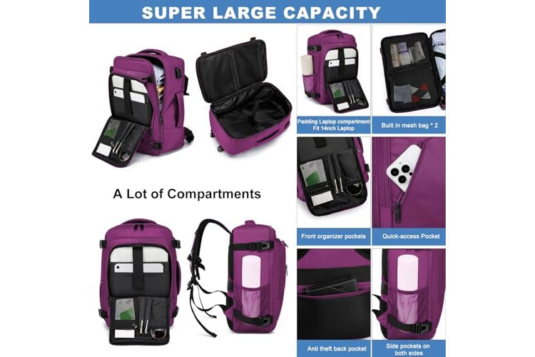 Lots of Space and Many Compartments: These carry on bags look small, but are surprisingly roomy so you can effectively store all the important travel accessories. A large main compartment with zipper and compression strap can be opened as a travel bag and offers space for clothes and personal items. Front zipper pocket, various packing compartments and quick access. A mesh pocket on the side for your water bottle.